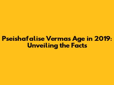 Hey there, folks! Let's dive into the fascinating world of Pseishafalise Verma and figure out something that has puzzled many. Specifically, we're talking about Pseishafalise Verma's age back in 2019. Now, I know what you're thinking: Why is this important? Well, sometimes knowing someone's age can put things into perspective. It helps us understand where they might have been in their life journey, the experiences they might have had, and the kind of impact they could have made. So, whether you're a curious fan, a dedicated researcher, or just someone who stumbled upon this question, you're in the right place. We'll explore everything we can to determine Pseishafalise Verma's age in 2019. It’s like a little detective mission, but instead of solving a crime, we're solving a numerical puzzle. Ready to crack the code? Let’s get started and unravel the mystery together! I'm super excited to share this information and make it easy for everyone to understand. Let's make this simple and fun, alright?