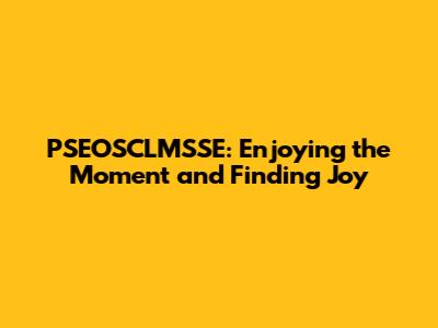 PSEOSCLMSSE: Enjoying The Moment And Finding Joy