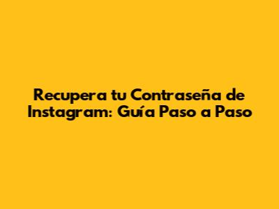 Recupera Tu Contraseña De Instagram: Guía Paso A Paso