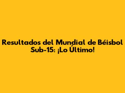 Resultados Del Mundial De Béisbol Sub-15: ¡Lo Último!