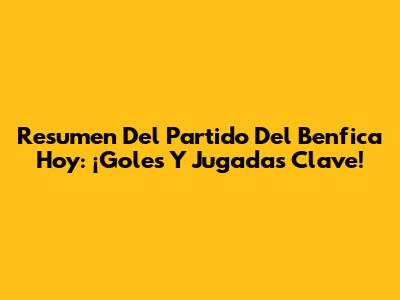 Resumen Del Partido Del Benfica Hoy: ¡Goles Y Jugadas Clave!