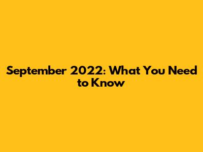 September 2022: What You Need To Know