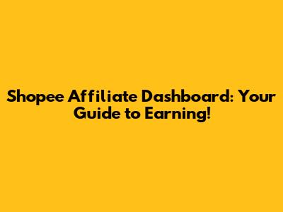 Shopee Affiliate Dashboard: Your Guide To Earning!