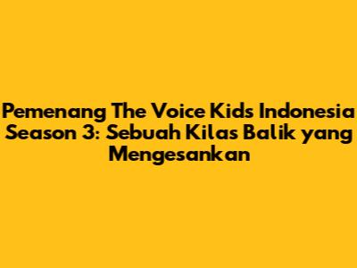 The Voice Kids Indonesia Season 3 adalah salah satu ajang pencarian bakat menyanyi yang paling dinantikan di Indonesia, guys. Acara ini berhasil mencuri perhatian jutaan pemirsa dengan menampilkan bakat-bakat muda yang luar biasa. Musim ketiga ini, seperti musim-musim sebelumnya, menawarkan pengalaman yang tak terlupakan, penuh dengan emosi, dan tentunya, persaingan yang sengit. Kita semua penasaran kan, siapa sih yang akhirnya dinobatkan sebagai pemenang? Mari kita telusuri lebih dalam tentang perjalanan musim ketiga ini, para kontestan berbakat, dan momen-momen yang paling berkesan. Dalam artikel ini, kita akan membahas pemenang The Voice Kids Indonesia Season 3, memberikan kilas balik tentang perjalanan mereka, dan melihat bagaimana acara ini telah memberikan dampak positif bagi para peserta.