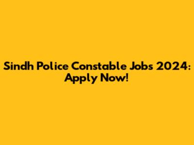 Sindh Police Constable Jobs 2024: Apply Now!