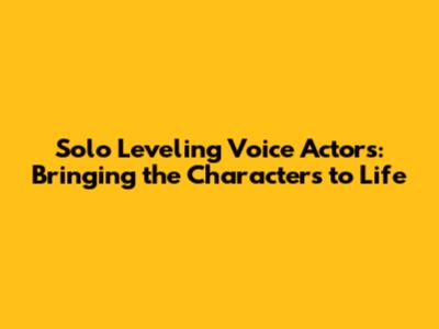 Solo Leveling Voice Actors: Who Brings The Characters To Life?