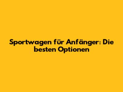 Sportwagen Für Anfänger: Die Besten Optionen