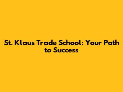 St. Klaus Trade School: Your Path To Success