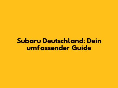 Subaru Deutschland: Alles, Was Du Wissen Musst!