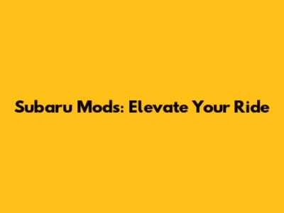 Subaru Mods: Elevate Your Ride