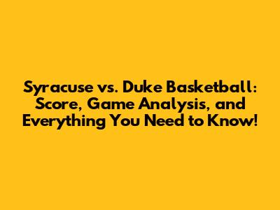 Syracuse Vs. Duke: Basketball Score, Game Analysis, And More!