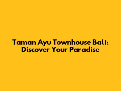 Hey there, future homeowner! Dreaming of owning a slice of paradise in Bali? Let me introduce you to Taman Ayu Townhouse Bali, a fantastic option if you're looking for a comfortable and stylish living space in this tropical haven. This article will be your ultimate guide, covering everything from the incredible location to the amazing amenities and the lifestyle that awaits you. So, buckle up, and let's dive in!