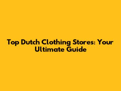 Top Dutch Clothing Stores: Your Ultimate Guide
