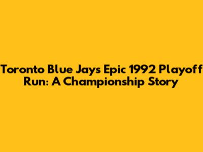 Toronto Blue Jays' Epic 1992 Playoff Run: A Championship Story