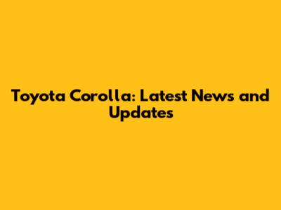 Toyota Corolla: Latest News And Updates