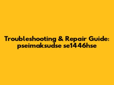 Troubleshooting & Repair Guide: Pseimaksudse Se1446hse