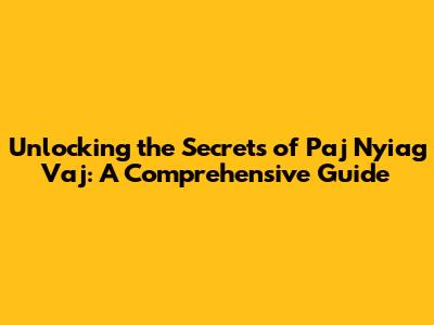 Unlock The Secrets Of Paj Nyiag Vaj: A Comprehensive Guide