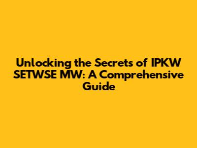 Unlocking The Secrets Of IPKW SETWSE MW: A Comprehensive Guide