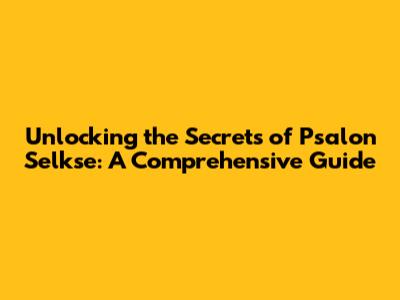 Unlocking The Secrets Of Psalon Selkse: A Comprehensive Guide