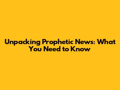 Unpacking Prophetic News: What You Need To Know