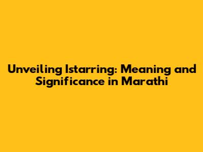 Unveiling 'Istarring': Meaning And Significance In Marathi
