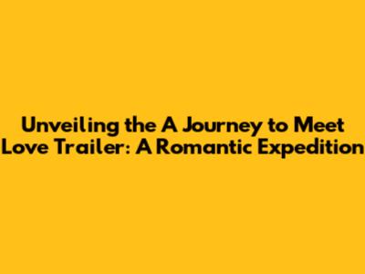 Unveiling The 'A Journey To Meet Love' Trailer: A Romantic Expedition