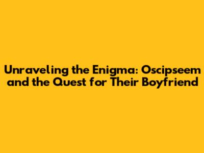 Unveiling The Mystery: Oscipseem And Their Boyfriend