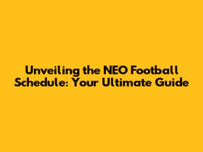Unveiling The NEO Football Schedule: Your Ultimate Guide