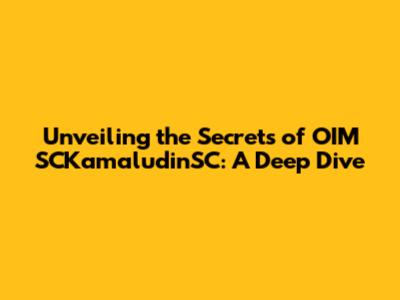 What Exactly is OIM SCKamaludinSC? Demystifying the Terminology