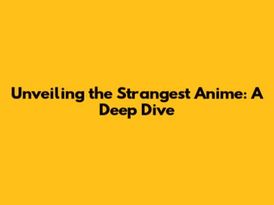 Unveiling The Strangest Anime: A Deep Dive