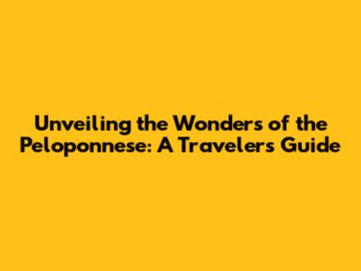 Unveiling The Wonders Of The Peloponnese: A Traveler's Guide