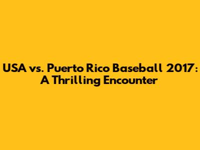 Hey baseball fans, let's dive into the epic clash between the USA and Puerto Rico during the 2017 baseball season! This game was more than just a match; it was a showcase of talent, passion, and national pride. We'll be breaking down the key moments, star players, and the overall impact of this unforgettable game. Get ready for a deep dive that will bring you right back to the edge of your seat!
