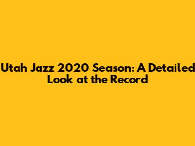 Utah Jazz 2020 Season: A Detailed Look At The Record