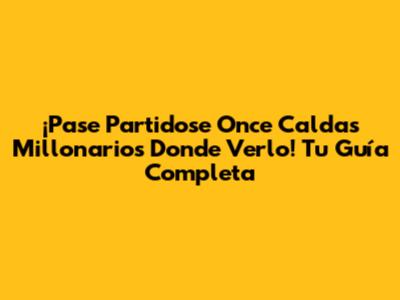¿Dónde Ver el Partido: Once Caldas vs Millonarios en Vivo?