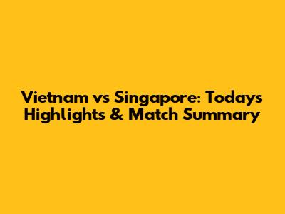 Vietnam Vs Singapore: Today's Highlights & Match Summary