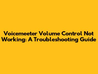 Voicemeeter Volume Control Not Working: Fixes & Troubleshooting