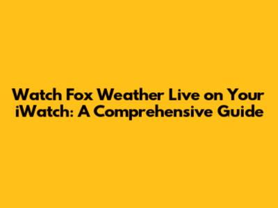 Watch Fox Weather Live On Your IWatch: A Comprehensive Guide