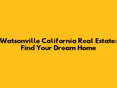 Watsonville CA Real Estate: Homes For Sale & Info