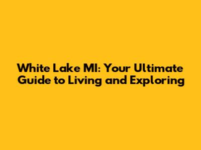 White Lake MI: Your Ultimate Guide To Living And Exploring