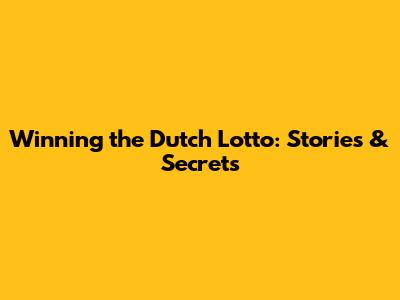 Winning The Dutch Lotto: Stories & Secrets