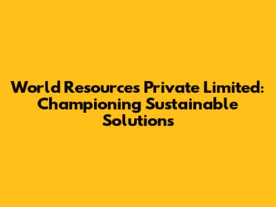 World Resources Private Limited: Sustainable Solutions For A Better Future