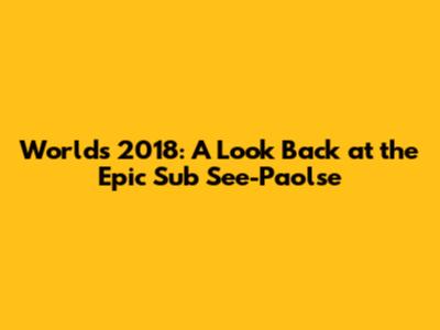 The Lasting Legacy of Worlds 2018 and Sub See-Paolse
