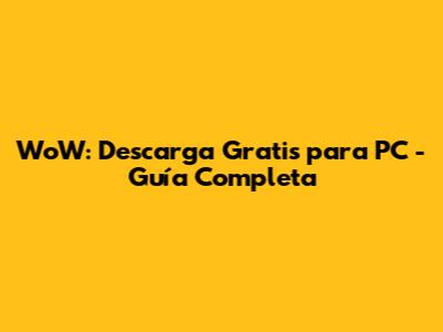 WoW: Descarga Gratis Para PC - Guía Completa