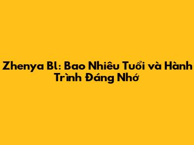 Zhenya Bl: Bao Nhiêu Tuổi Và Hành Trình Đáng Nhớ